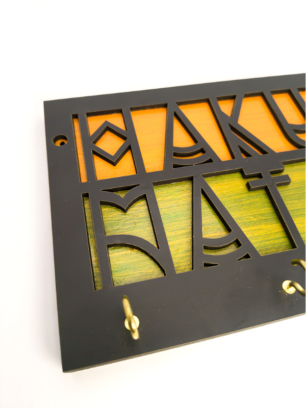 Realizado en MDF, cortado con láser y pintado y ensamblado a mano.