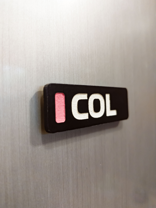 Realizado en mdf, grabado con láser y pintado a mano, con imán de cerámica.