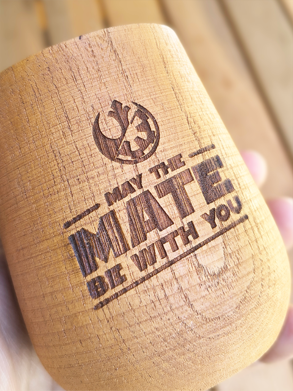 Realizado en Algarrobo, grabado con láser y barnizado en las cuatro caras exteriores. Incluye bombilla e instrucciones de curado.
