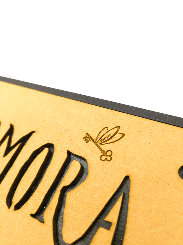 Realizado en MDF, cortado con láser y pintado y ensamblado a mano.