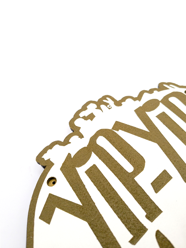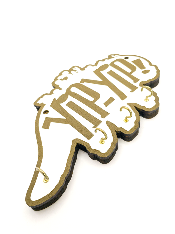 Realizado en MDF, cortado con láser y pintado y ensamblado a mano.