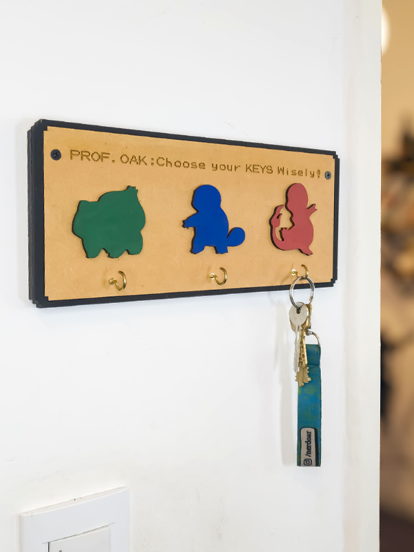 Realizado en MDF, cortado con láser y pintado y ensamblado a mano.