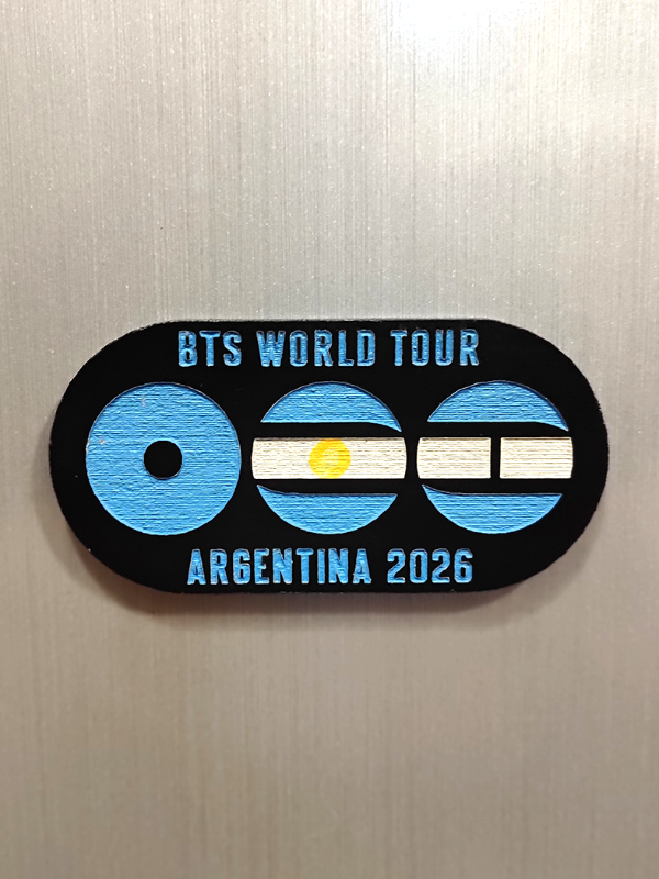 Realizado en mdf, grabado con láser y pintado a mano, con imán de cerámica.