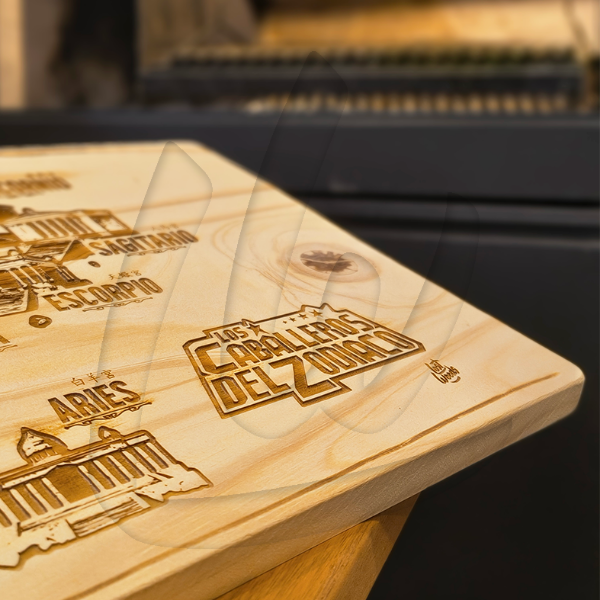 Realizado en pino y grabado con láser. Incluye instrucciones de curado.